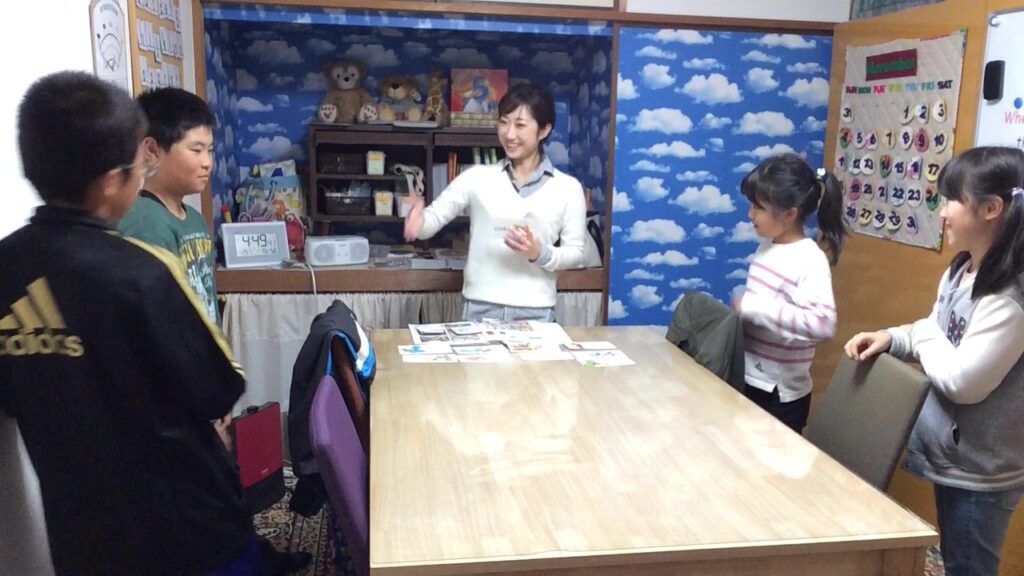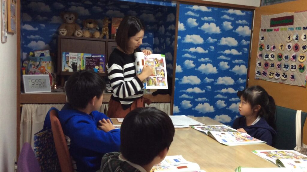 英会話の授業で一言も自ら英語を話す機会がなく、ただリピートの繰り返し、みんなでゲームをして遊んで帰ってくる。これでは英語は上達しません。英語上達の秘訣は、どれだけ沢山の英語を口にだす機会を持つことができるかです。